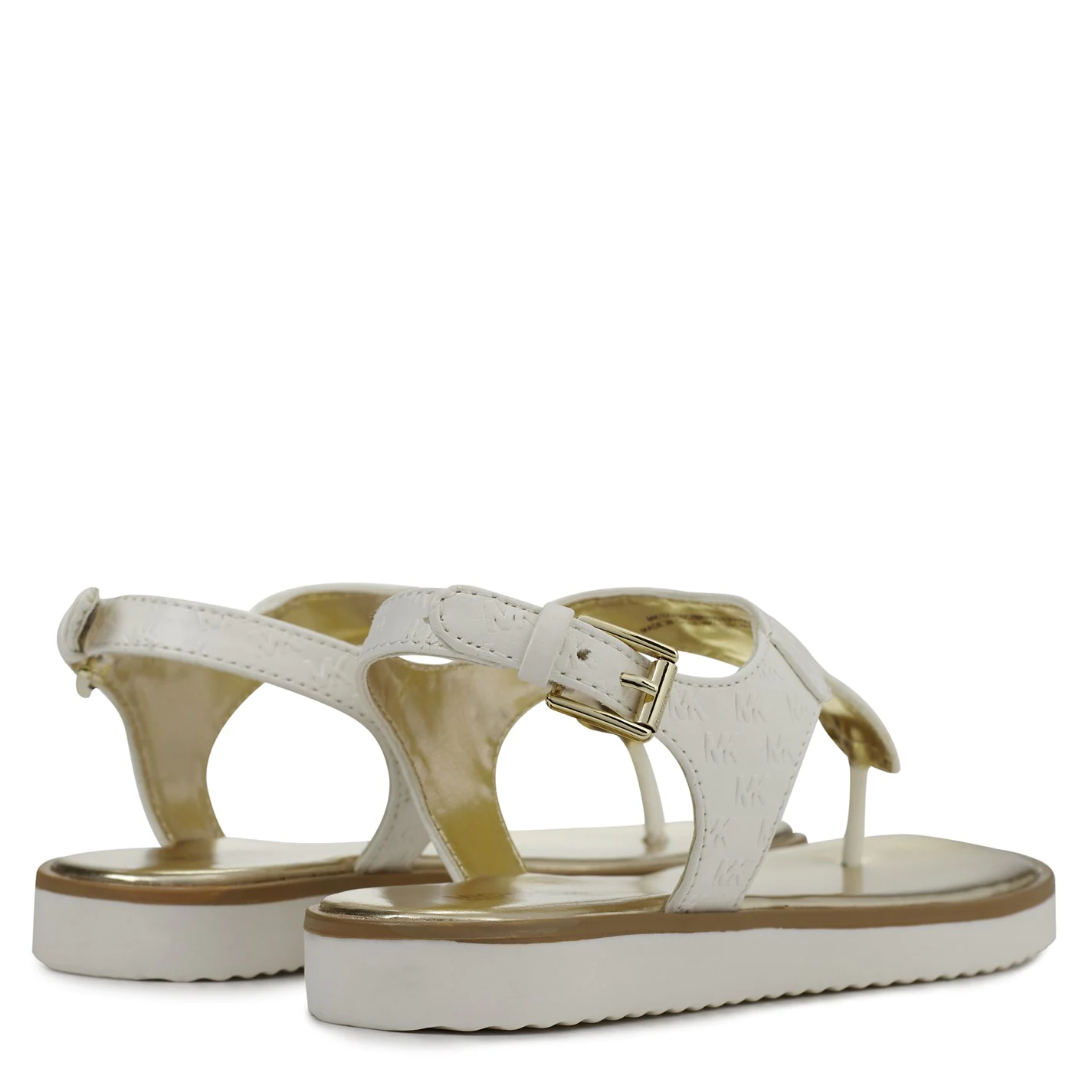 Update your little ones holiday collection with the Brandy Paislee Sandals by Michael Michael Kors. Crafted with a strappy leather upper section on top of a rubber sole, these sandals come in an open toe design that is secured by a rear buckle fastening. With a signature logo plate to the upper, they are finished with the Michael Kors branding for a premium look.