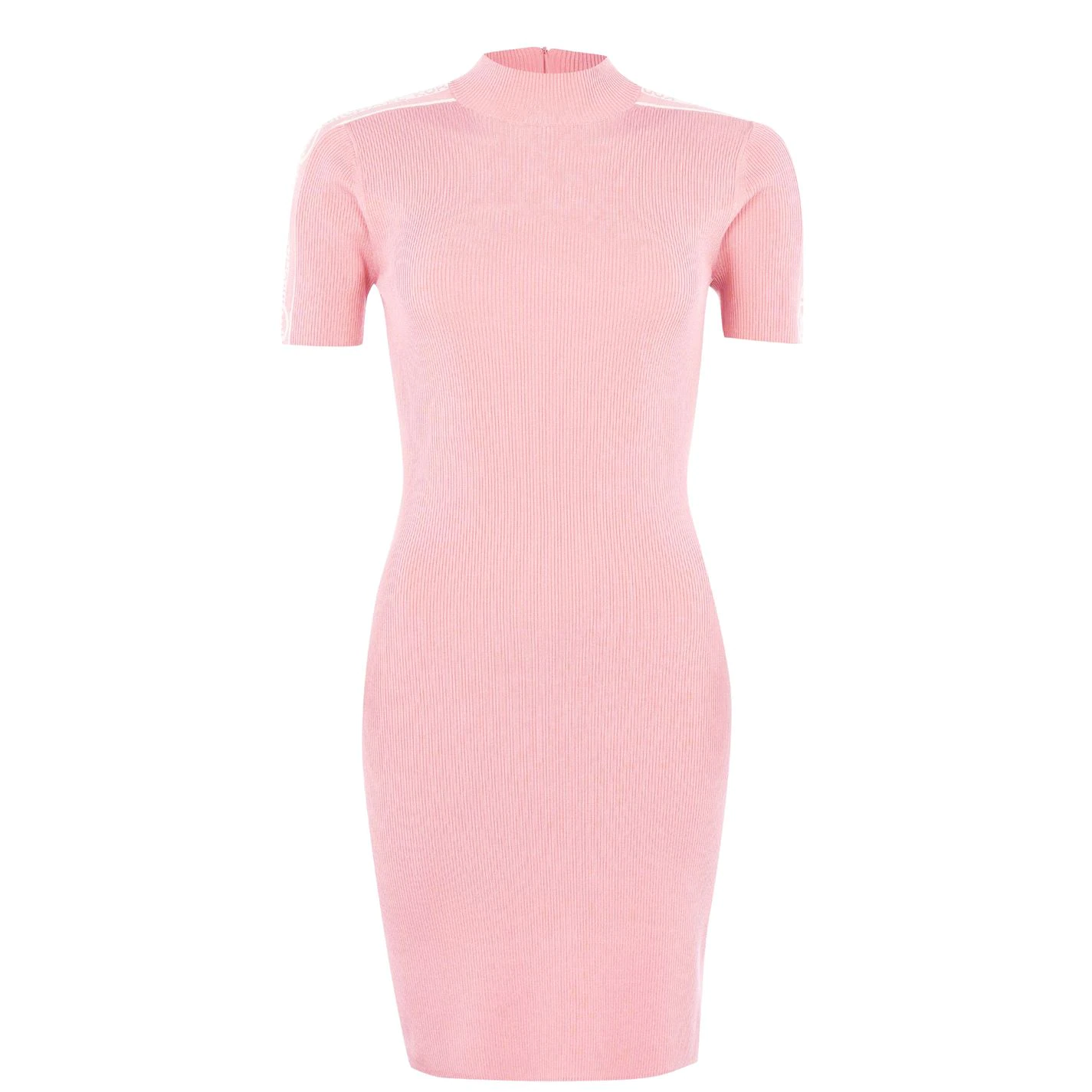 Add a sense of luxury to your dress sanctuary with the Circle Tape Dress. Constructed in a figure hugging, ribbed fit, this mini dress is finished with a scooped neck, short sleeves and branded taped shoulders in a contrasting colour. Wear with tights in the winter or how it is in the summer.