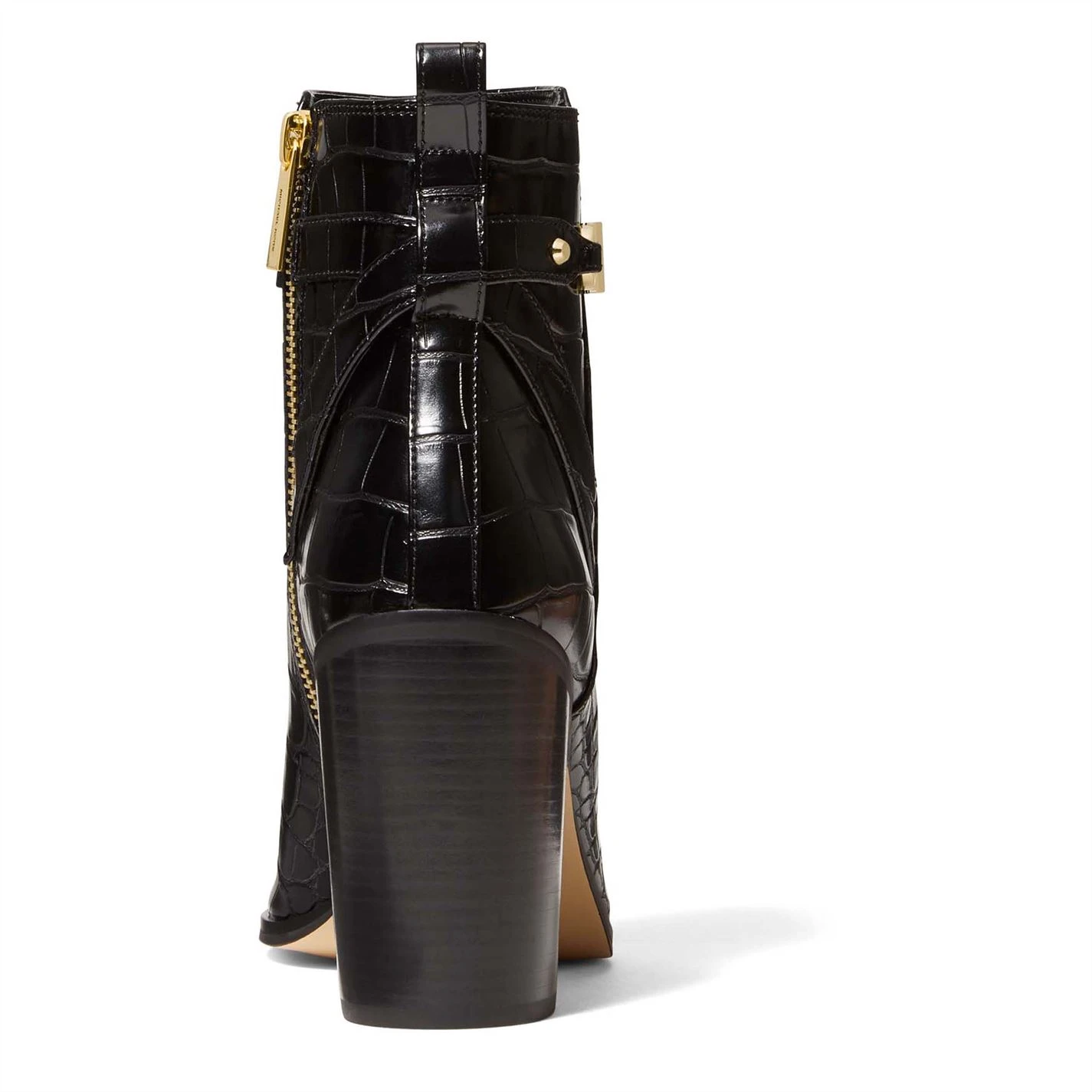 Inject a high end aesthetic into your footwear selection with the Michael Kors Farrah Heeled Boots. The design features a croc embossed upper with a side zip fastening for an easy on and off. The gold toned Michael Kors branding offers an instant high quality look with the medium block heel completing the versatile style.