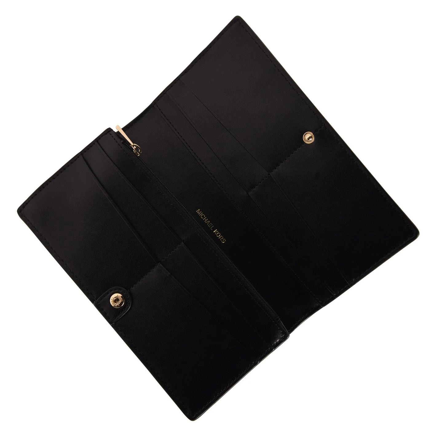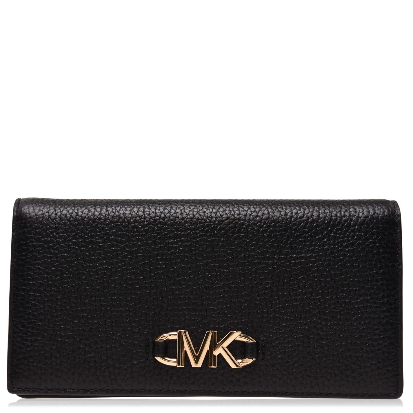 Update your daily purse with the Izzy Large Fold Over Purse by Michael Kors. Designed with 8 card slots for your essential cards, additional slip pockets for notes and a zip fastening middle for loose change, this purse has a fold over stud fastening to keep your contents secure. This leather purse is finished with the signature MK initials in a gold metal hardware to the front for brand appreciation.