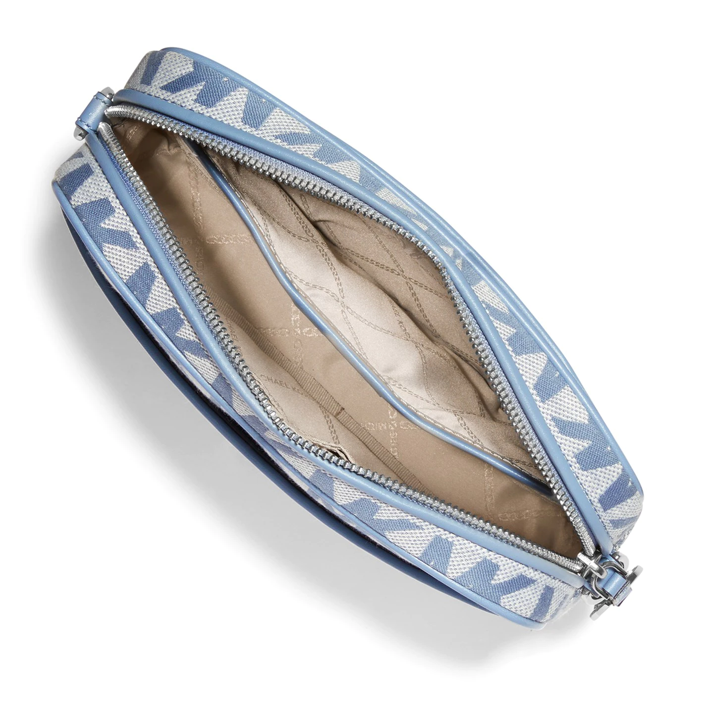 Carry your daily essentials in style with the Jet Set Cam Cross Body Bag by Michael Michael Kors. The bag features a main compartment with zip fastening, two external slip pockets, adjustable shoulder strap that is detachable, internal slip pocket and six card slots. The look is completed by MK monogram pattern to the exterior, branding to the lining, gold-tone hardware of the brands logo to the zip and the front for instant brand appeal. Dimensions: W 28.8 x H 25 x D 7.8 cm.