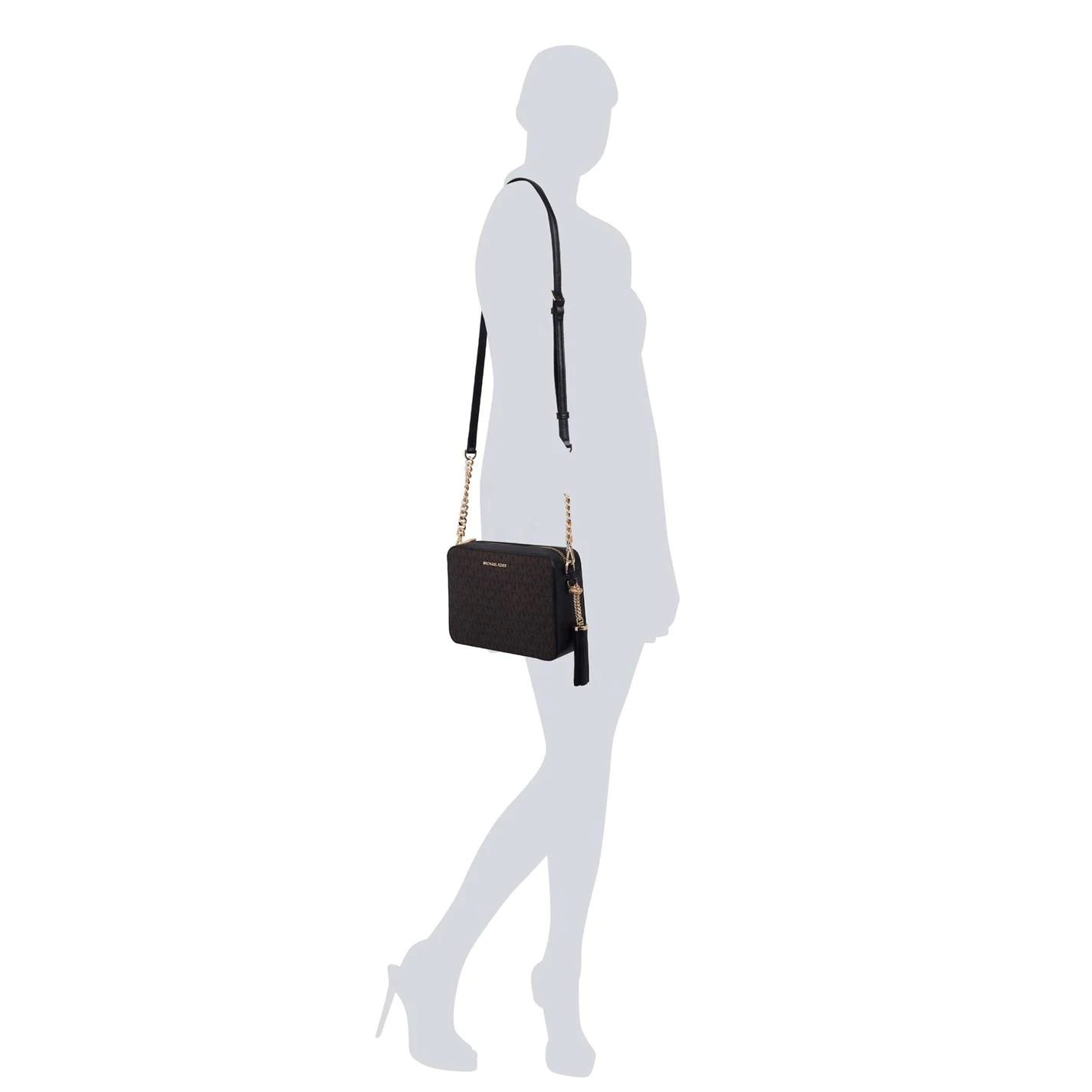 The saint Laurent Jet Set Signature Medium Camera Bag is a great addition to your everyday accessories. Crafted with a grained leather, this camera bag features a zip fastened compartment with internal pockets. an adjustable shoulder strap along with a tasselled pull to the zip give a stylish touch. The look is completed with the Michael Kors logo and branding.