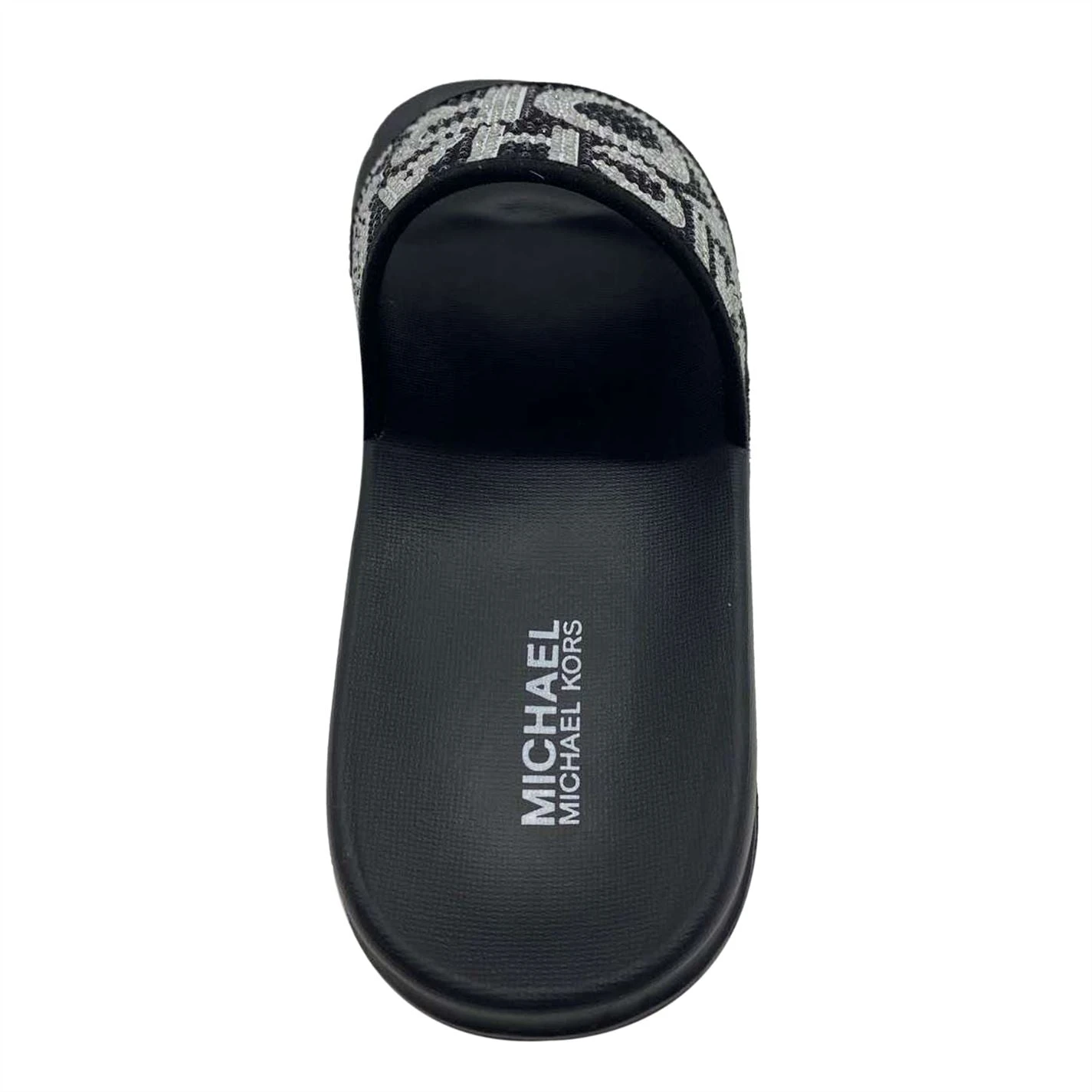 The Michael Michael Kors Jett Jae Sliders are a perfect addition to your little ones summer wardrobe, featuring a wide forefoot strap with a contoured footbed for that offers all day comfort, completed with the classic Michael Kors branding to the forefoot.