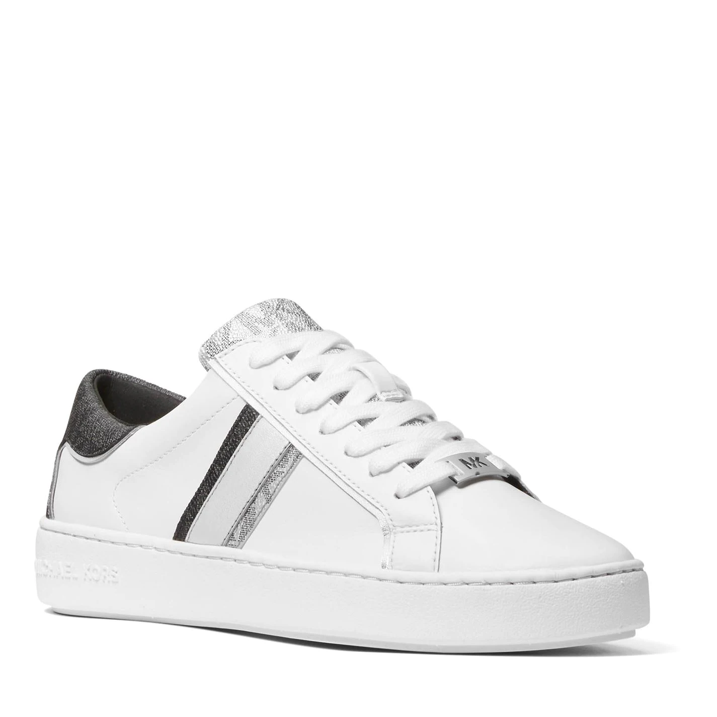 The Michael Michael Kors Keaton Stripe Sneakers are a great addition to your casual footwear collection, crafted with a shaped ankle collar and a lace fastening for a secure fit, while the cushioned insole and midsole provide a comfortable ride. A simple panel design to the upper with a contrasting heel panel and stripe detail to the side give a stylish touch, completed with the Michael Kors branding to the tongue.
