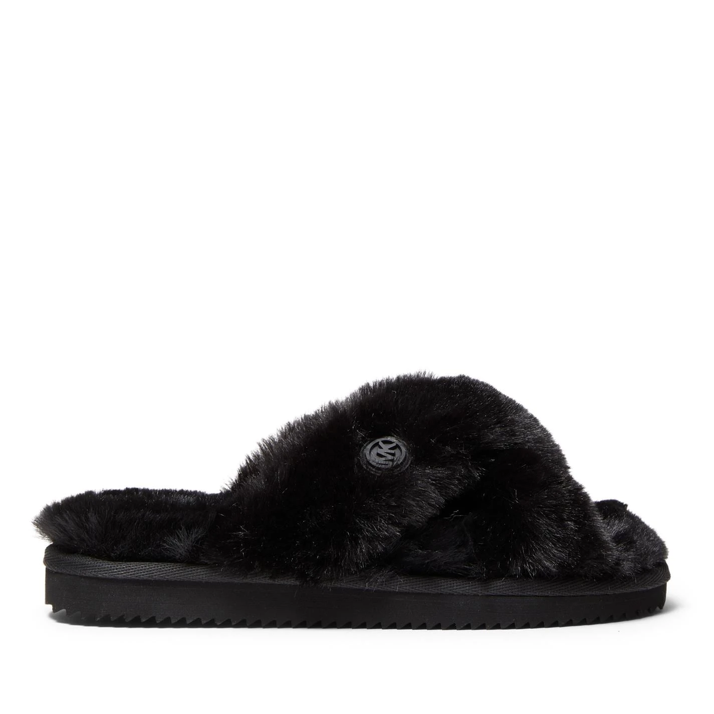 Stay cosy with the Lala Slipper brought to you by Michael Kors. Embracing the cosy-chic style, these slip on shoes have been designed with a faux-fur fabrication to the upper and foodbed for premium comfort with a double crossover strap for a secure fit. Sat upon a Rubber sole with a rigid bottom for optimum durability on wooden floors, these slippers are the perfect shoes to wear on colder days.