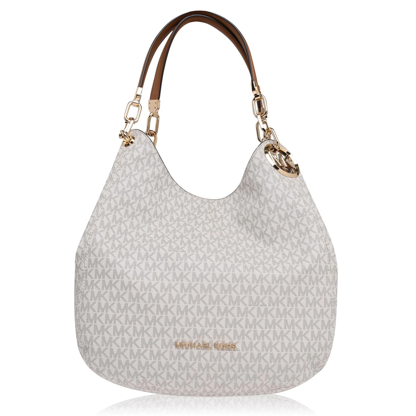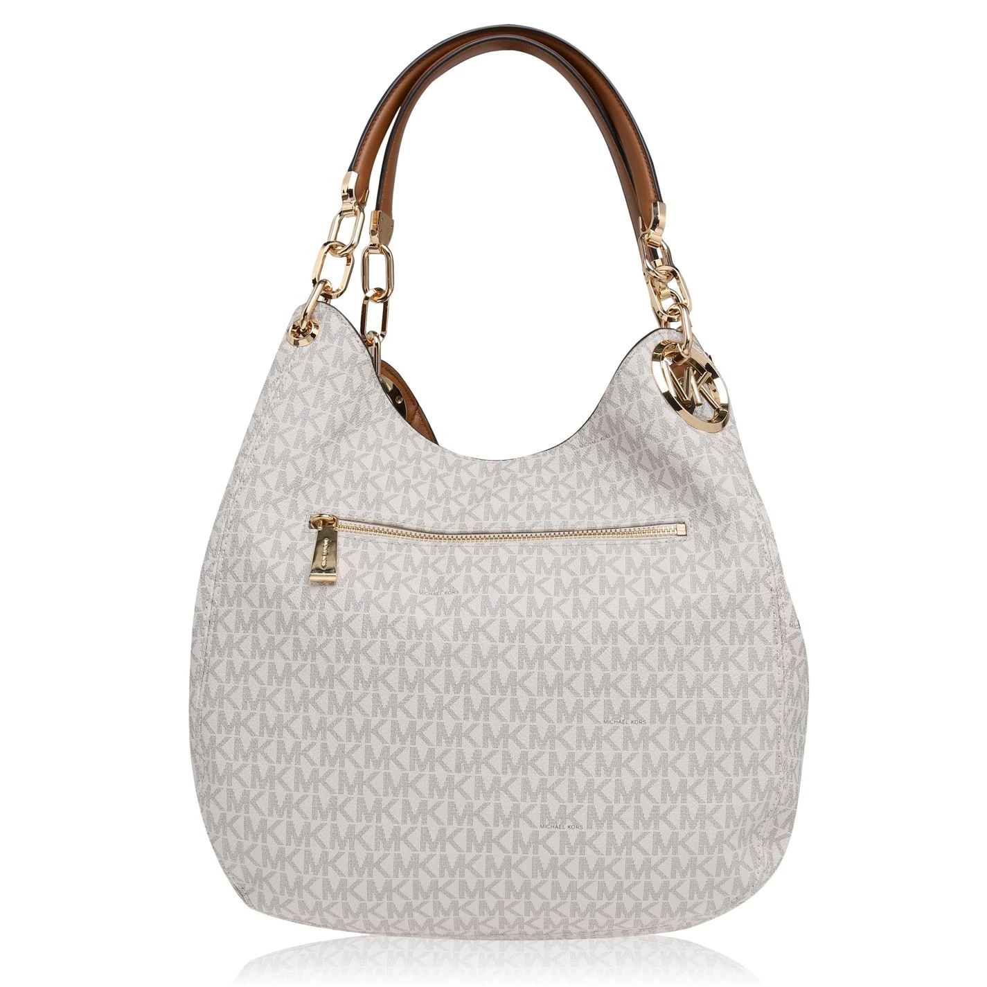 Invest in this stunning MICHAEL Michael Kors Lillie Large Logo Shoulder Bag, perfect for everyday casual attire. Designed with a mixed blend coated canvas, three compartments with a zip closure for the middle one, and two stud closure components and exterior zip pocket. The handles are complete with chain detail and MK metallic branding. The iconic MK branding features throughout.