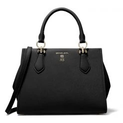 Carry your essentials in style with the Marilyn Medium Satchel by Michael Michael Kors, crafted from smooth saffiano leather with a polished finish. The bag features two top handles, an detectable and adjustable strap that can be worn on the shoulder or cross the body. This bag has zip fastening with two internal slip pockets and a internal zip pocket. The look is completed by branding on the exterior in a gold-tone hardware and branded lining. Dimensions: W: 28.5 cm x H: 20.9 cm x D: 13.9 cm.