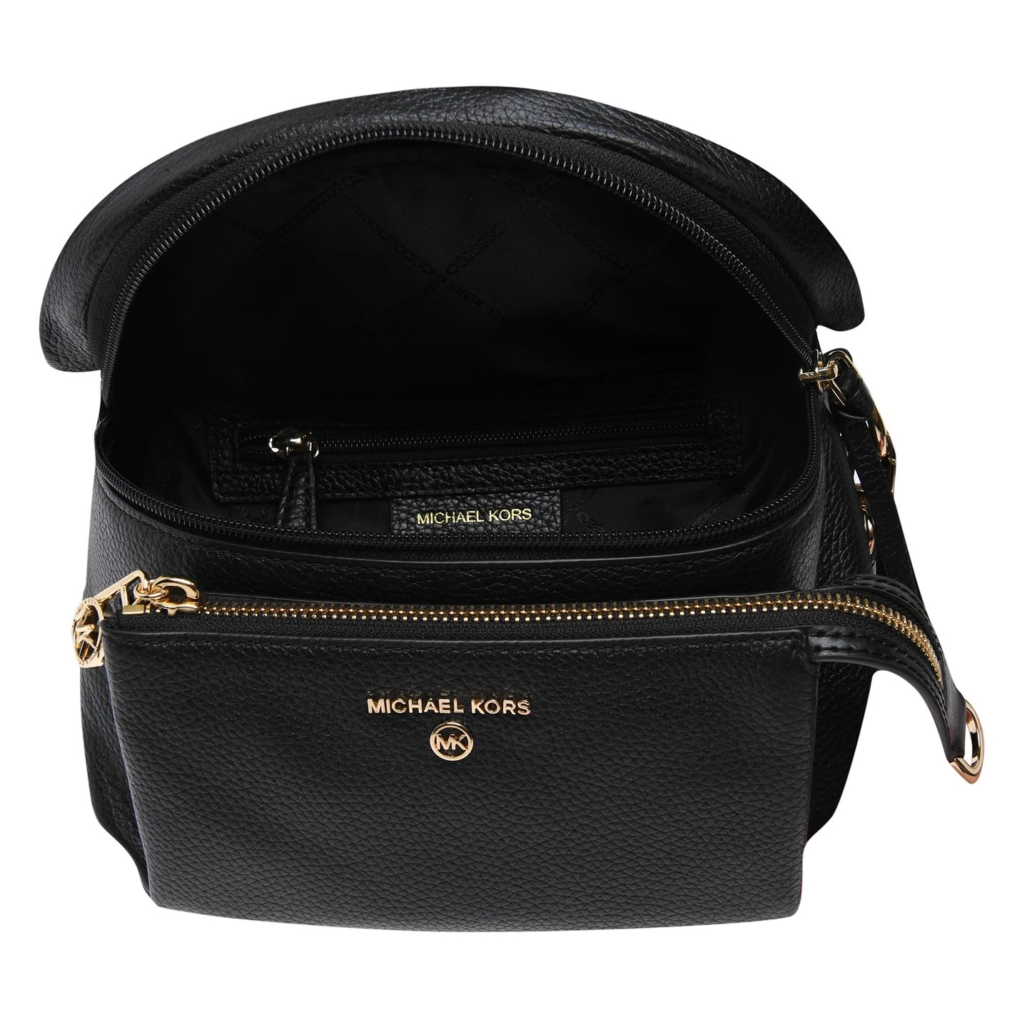 Update your day to drinks attire with this Slater Messenger Bag by MICHAEL Michael Kors. Crafted in a luxurious grained leather, this piece boasts a zip closure front compartment as well as a zip closure to the main compartment, perfect for all your belongings. Suspended from an adjustable woven strap and chain handle. This versatile bag features the signature Michael Kors metallic branded metal hardware design to the front, this bag would make the perfect piece.