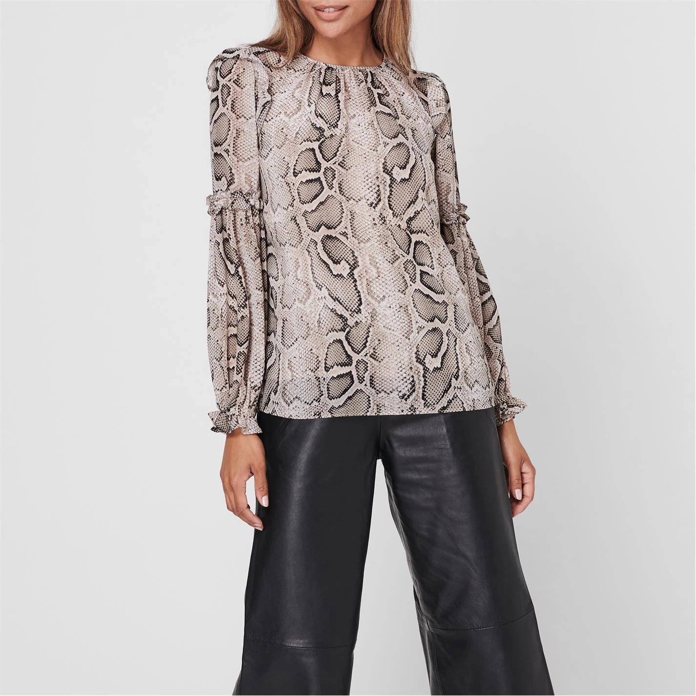 MICHAEL Michael Kors Snake Ruffle Long Sleeve Blouse