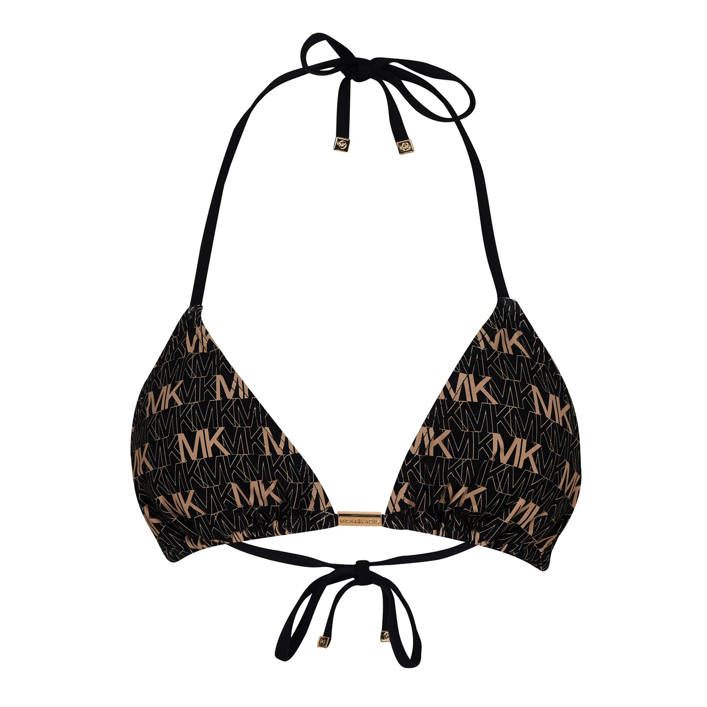 Add a statement piece to your swim wear collection with the Michael Michael Kors Triangle String Bikini Top. Crafted from a stretchable nylon material, this feminine piece boasts a plunge neckline, easily removable padded cups, adjustable shoulder straps and a back clasp. Whilst decorated with the Michael Michael Kors branding, this bikini top is finished with a metal detailing to the front displaying brands logo for a premium look.