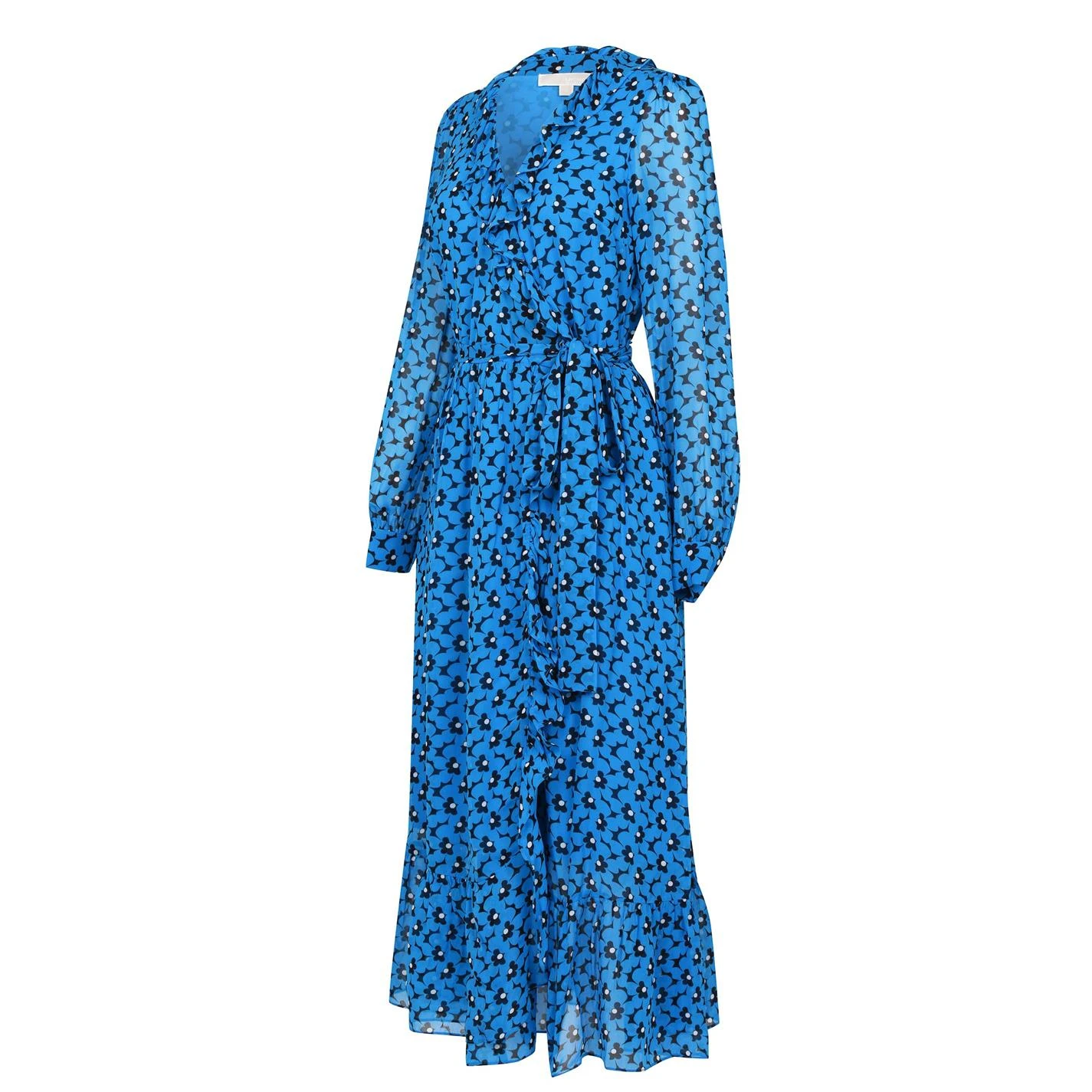 Enhance your collection with this MICHAEL Michael Kors Whitney Dress. Constructed with long sleeves and an adjustable V neckline for a classic look, it features tie fastening to the waist for a flattering fit. This dress is an all over print design with a signature logo and is complete with MICHAEL Michael Kors branding.
