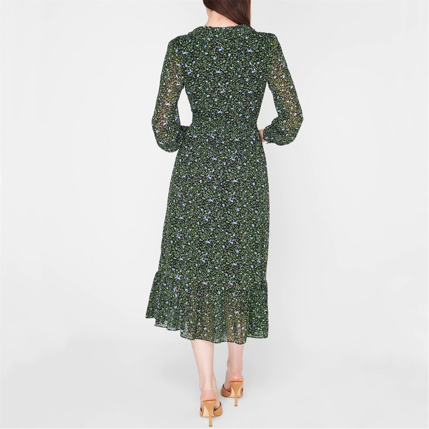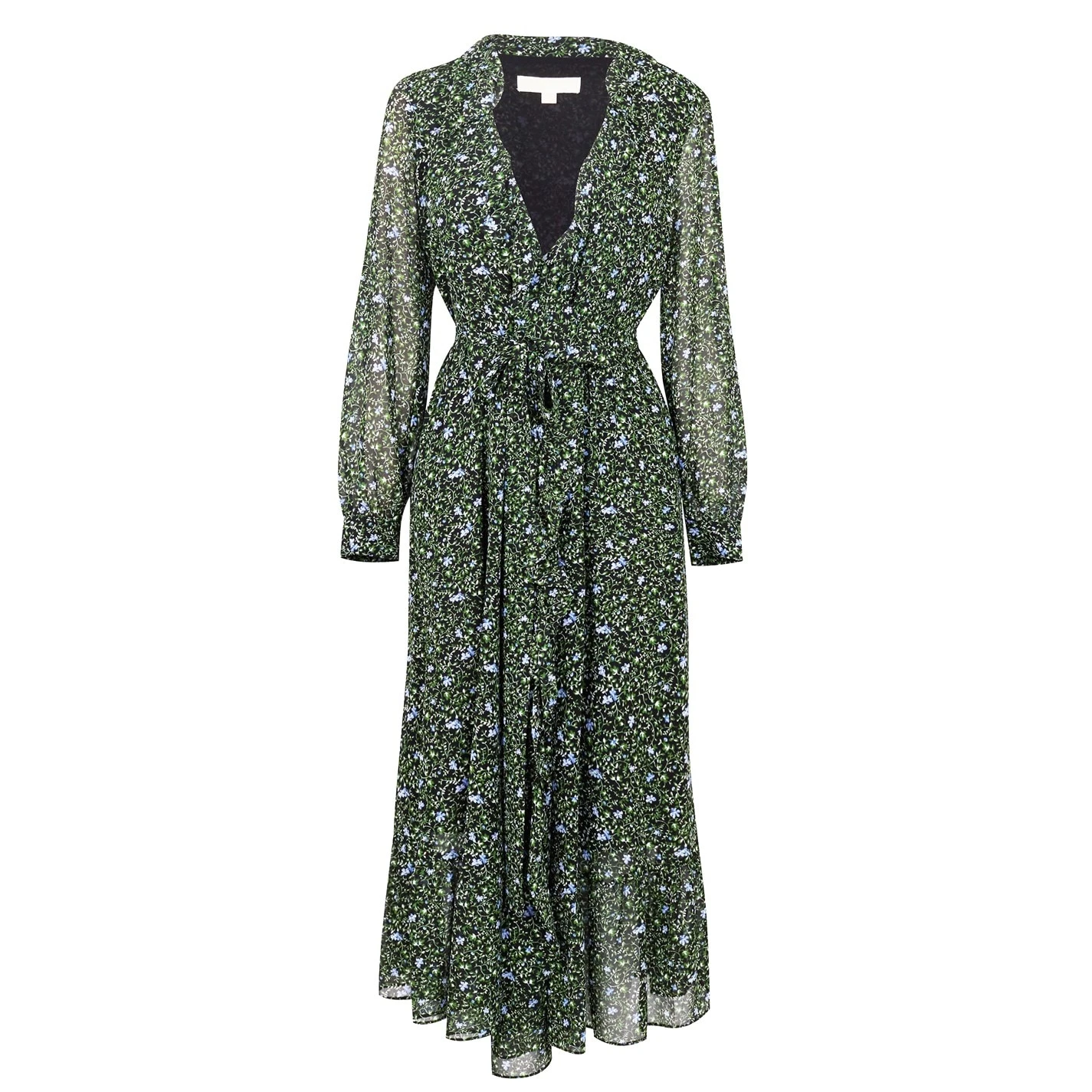 Elevate your dress selection with the Michael Kors Whitney Vine Dress. A wrap construction with a tie fastening at the waist for a flattering fit and long sleeves with button cuffs. The frilled detailing offers a classic feminine touch with the midi length making it perfect during the transitional seasons. Complete in an all-over floral print for a timeless appeal.